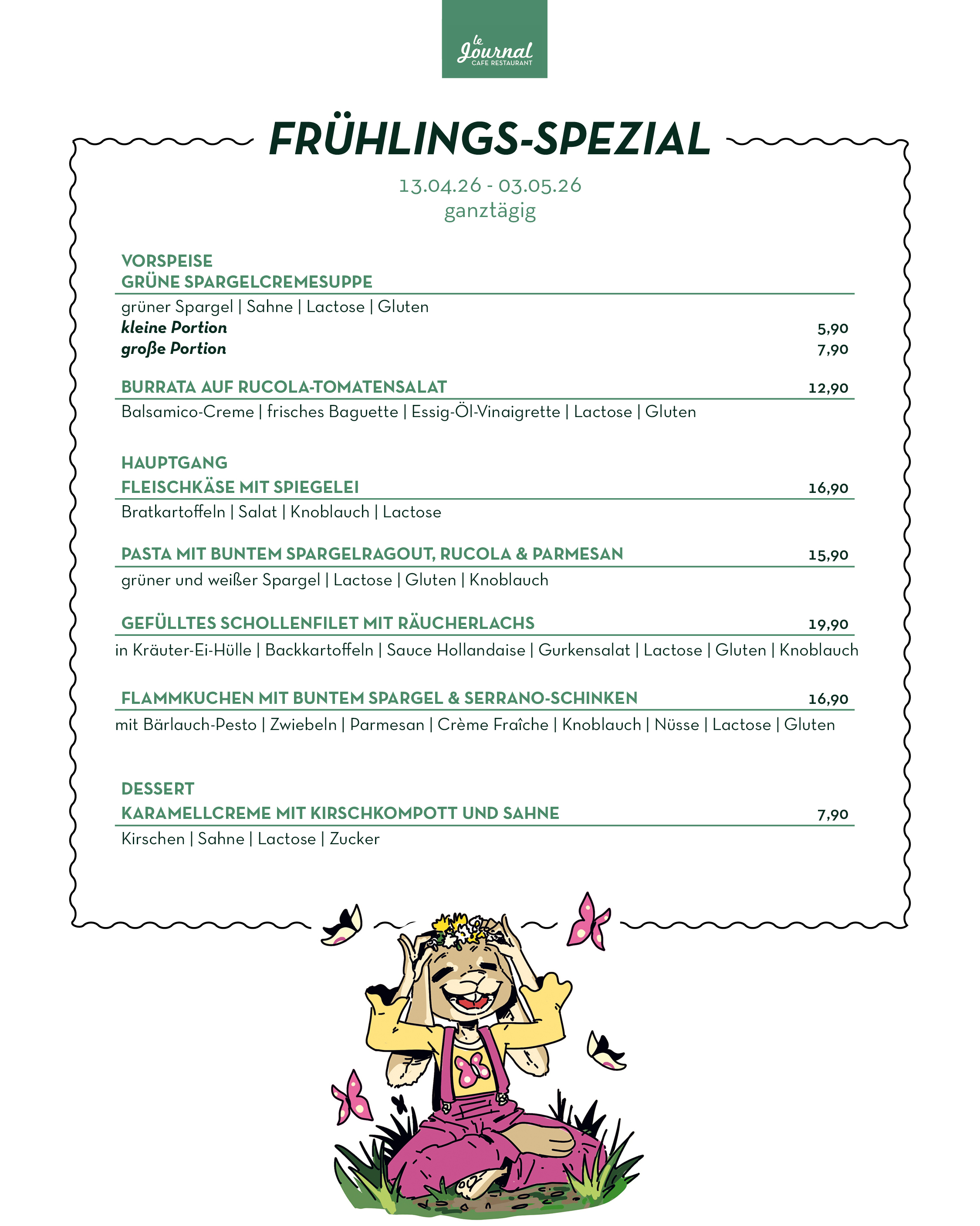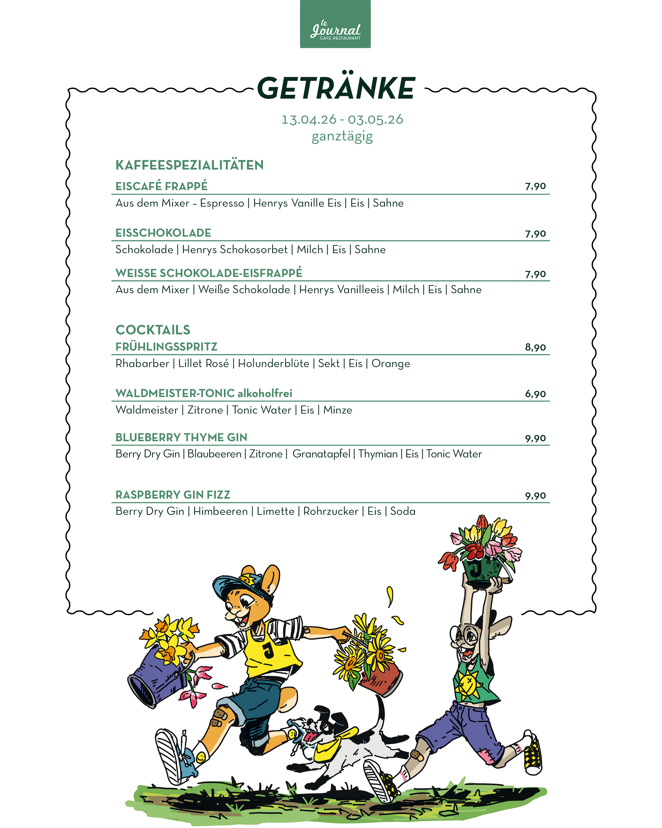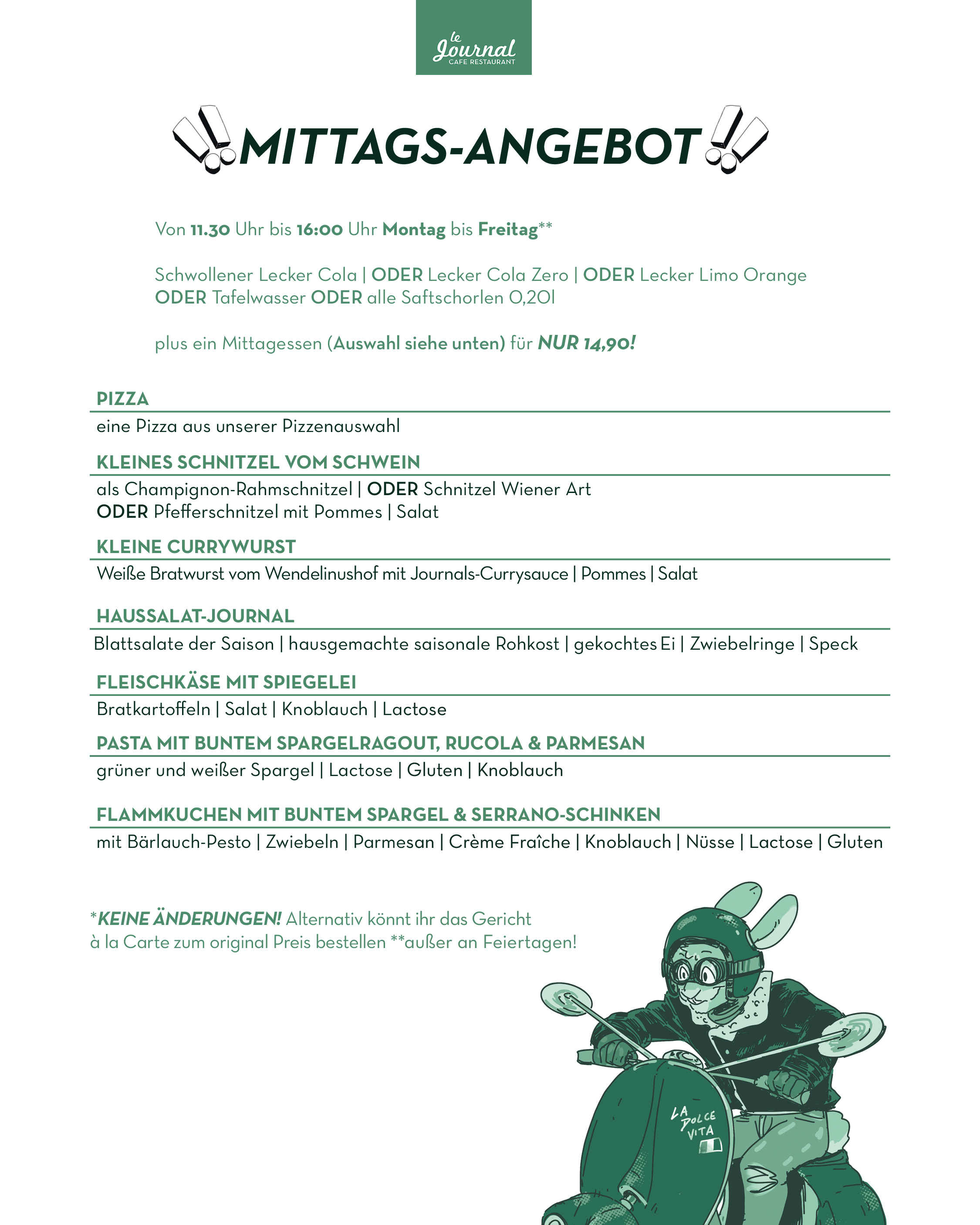 durchgehend warme Küche von 11.30 Uhr bis Open End (mind. bis 21.00 Uhr)