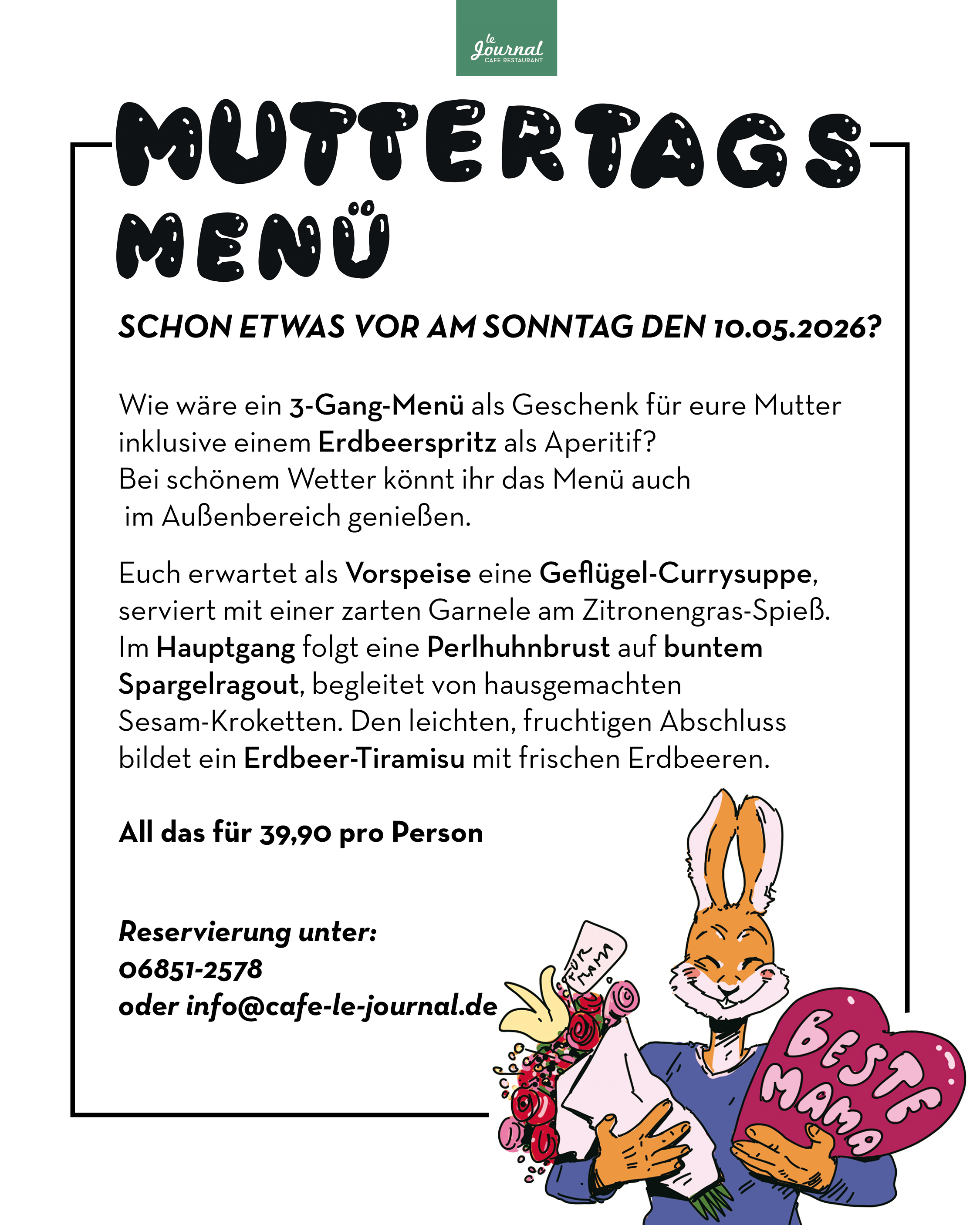 Neben einem leckerem 3-Gang-Menü, könnt ihr euch bei schönem Wetter, ab 15 Uhr, auf Live Musik von Andrew Lauer freuen.